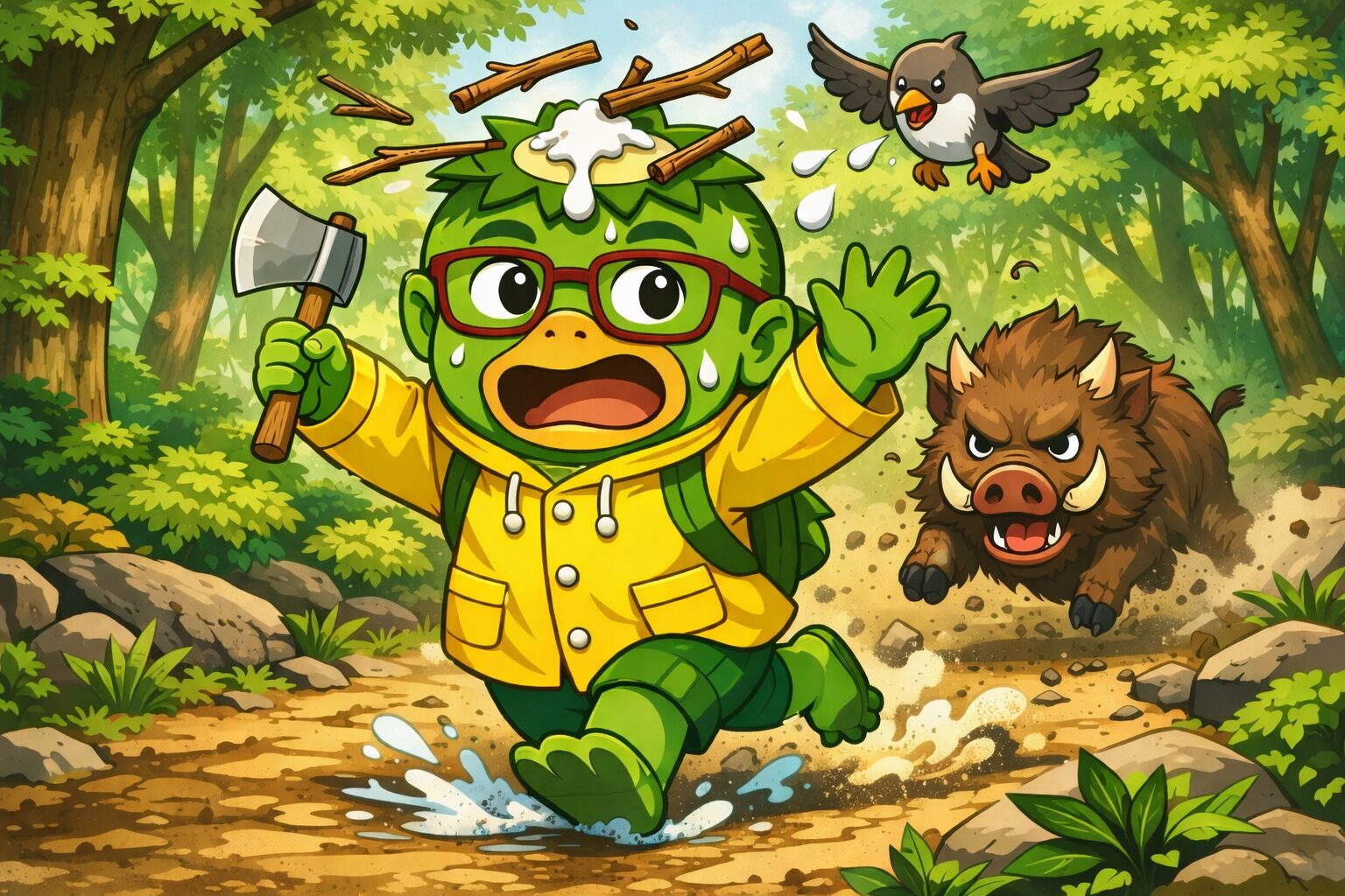 上空から降ってくる「鳥のフン」に当たっただけでマヒし、落ちてきた「木の枝」に当たれば昇天。イノシシにぶつかればもちろん即終了。